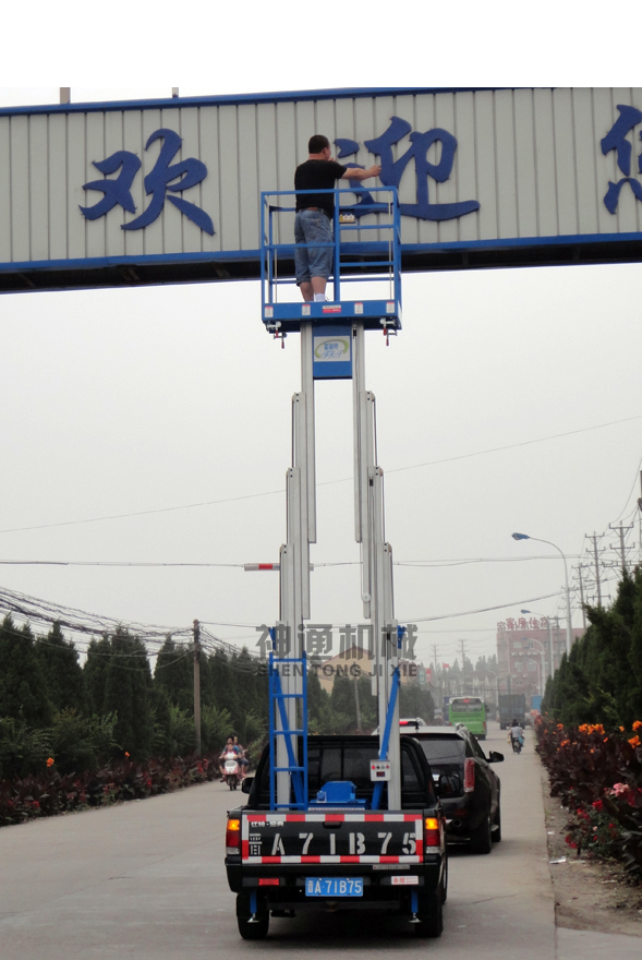 產(chǎn)品規(guī)格:車載鋁合金式升降平臺根據(jù)升降高度可分為:單柱6、8、10米,雙柱6、8、10、12米升降平臺,設(shè)備載重150公斤至200公斤。客戶可根據(jù)需求選用解放、東風(fēng)、輕騎、福田、電瓶車等任何車型,設(shè)備直接采用汽車或電瓶的直接動(dòng)力升降。